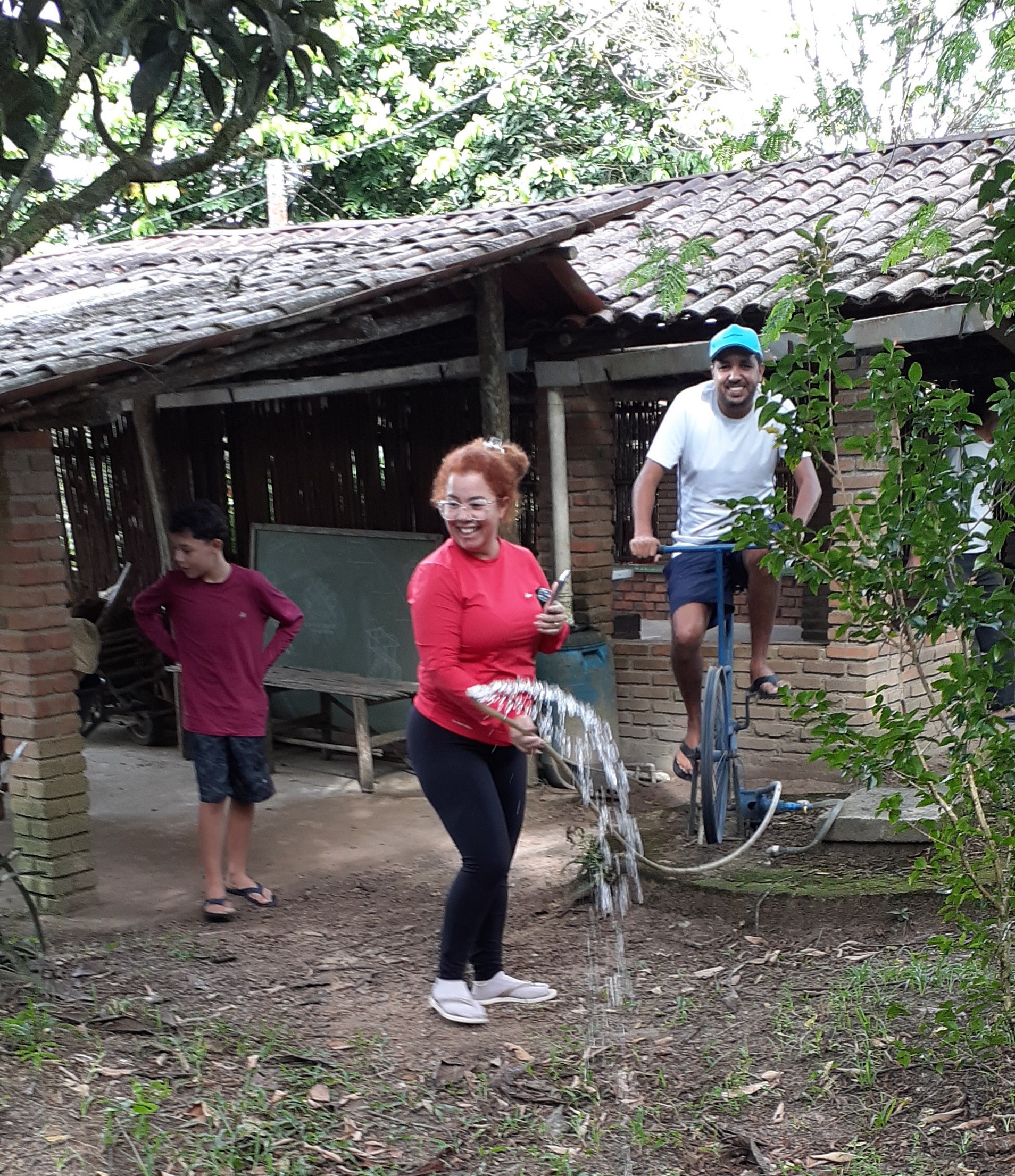 Apoio: tem banheiros externos para visitantes, e um espaço comum, com mesas, pia e água de beber.